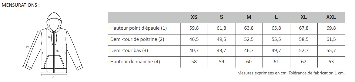 | Taille | XS, S, M, L, XL, XXL |